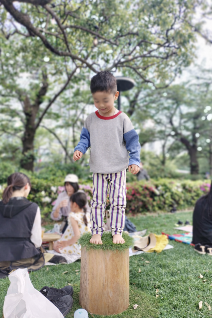 家族でのんびり過ごしていたところ、ピクニックシートの横に椅子があり、そこに下の子がちょこんと立ったので何をするのかと思っていると「ママたちが怒るよ、ぷんぷんぷん、ママたちが怒るよ、ぷんぷんぷん。〇〇君(下の子)は泣くよ、えんえんえん。〇〇君は泣くよ、えんえんえん」と笑顔で熱唱し始めました。それを見た上の子が楽しそう、踊り始めました。