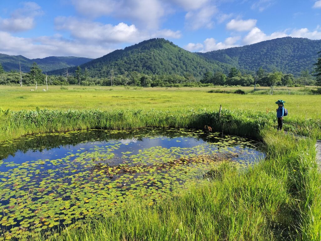 翌朝の朝食後は尾瀬植物研究見本園を散歩しました。30分くらいで一周できる散策路をでぐるりと回ります。
