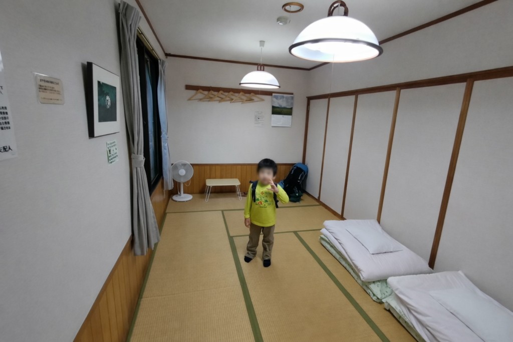 至仏山荘の部屋は和室の個室。日が暮れた後はお風呂に入り晩飯食べて2人で爆睡しました。