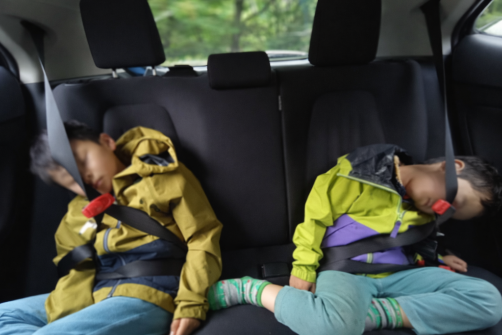 このキャンプ場珍しいのがキャンプ場に大浴場がありました。やはり湯舟はありたい。子ども達と入浴し、寝かしつけをして、妻と焚火台の前で「子ども達やばいくらい元気だな。」と話しながらお酒飲んで一日終了しました。