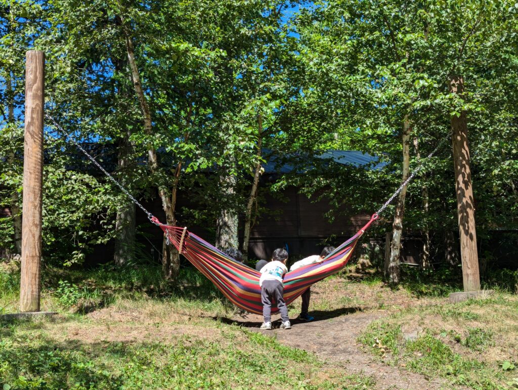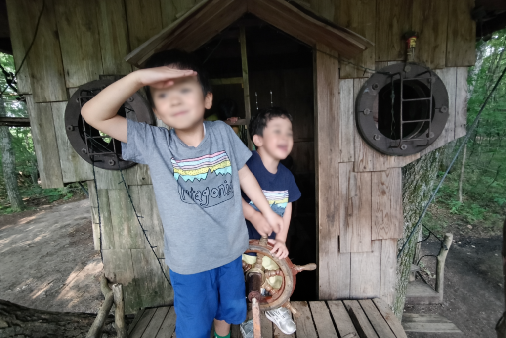 その後はツリーハウスや遊具で遊んだり、奥の森を探索します。