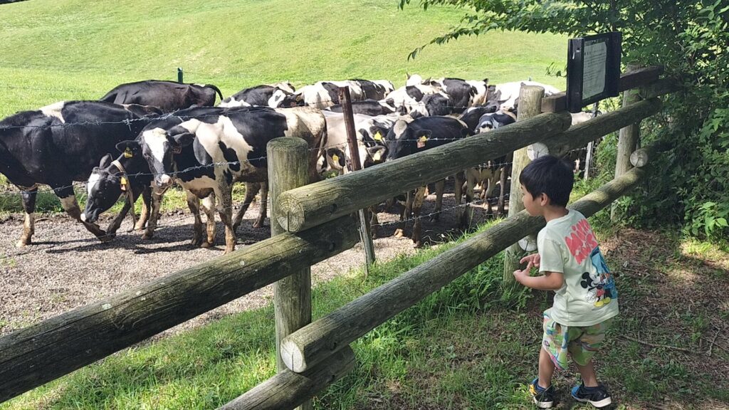 ただ、上の子は牛をどうしても見たいというので、私と上の子でさらに上へ。20分くらい登ると念願の牛が登場。上の子は牛の管理人にすごい勢いでどこに行くのか喋りかけていました。